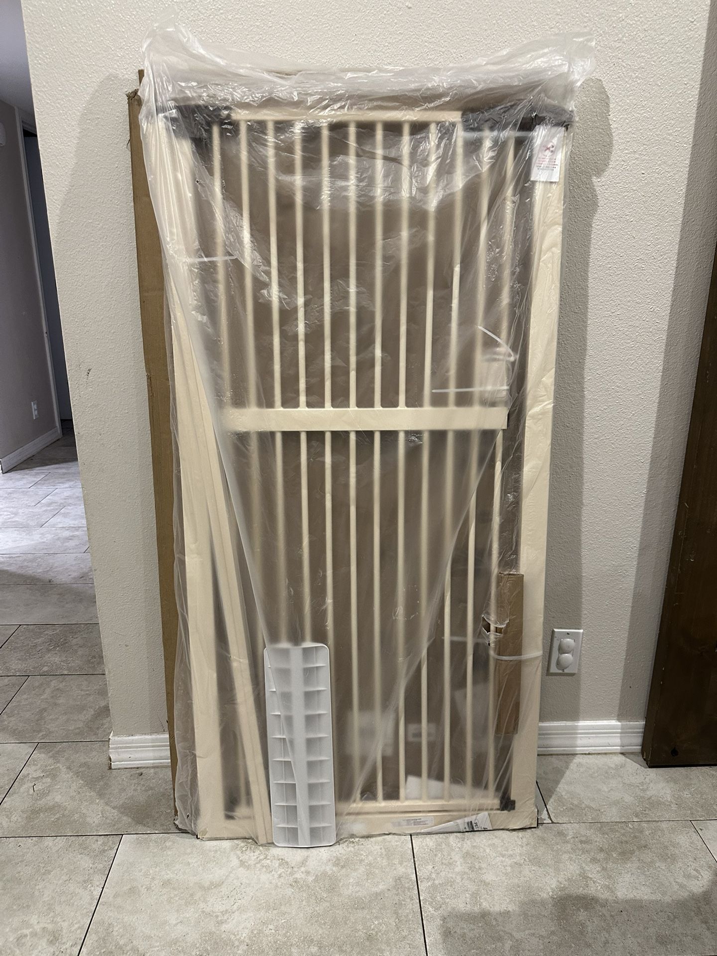 New - open box. 55” tall. Pressure mount with walkthrough.