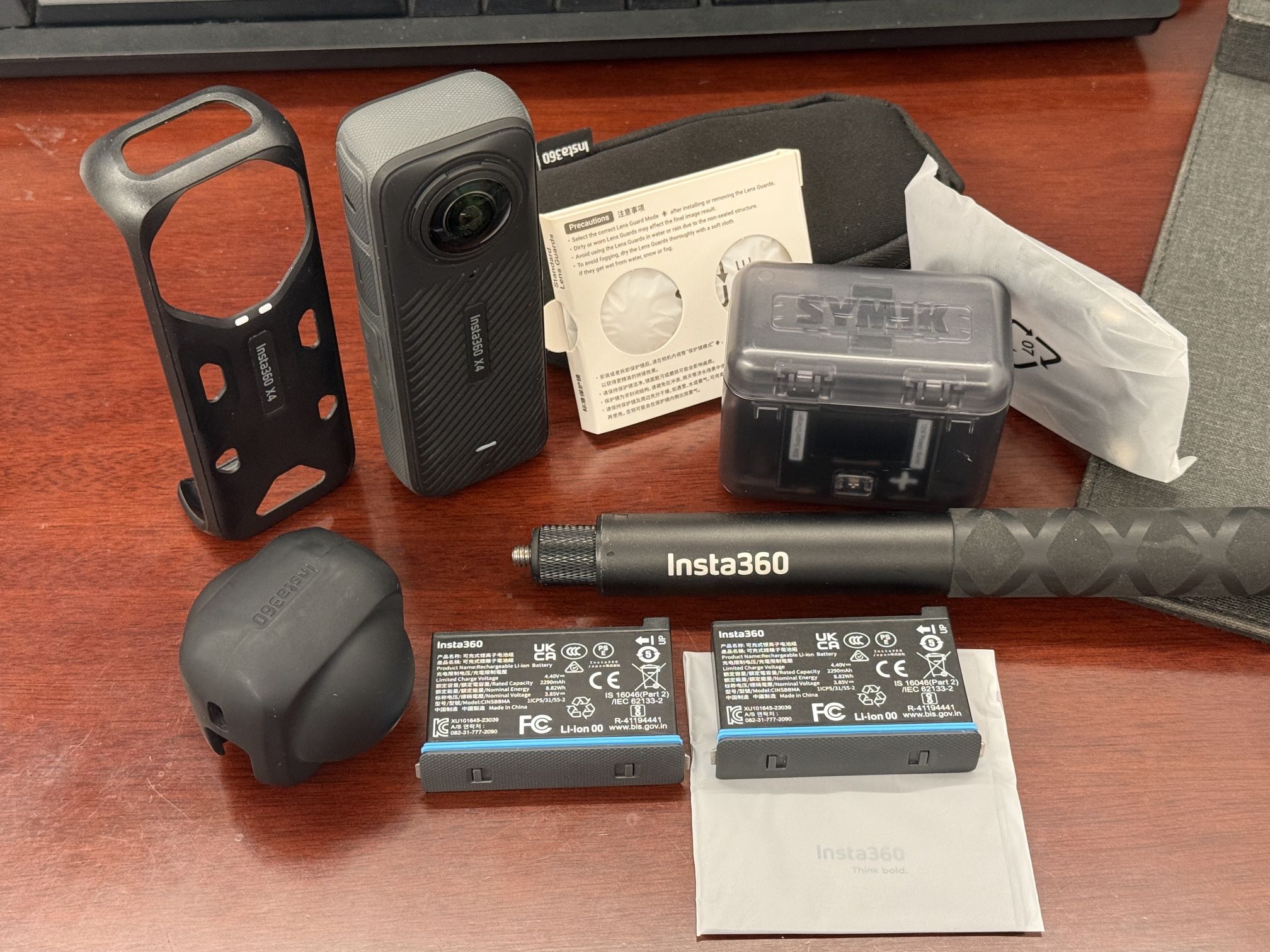 FIRM $400 Barely used, each battery has 3 cycles. 1x Insta360 X4 2x Genuine Extended Range Batteries 2x Genuine Lens Guards NEW 1x Symik Super Charger 1x Genuine i360 Selfie Stick 1x Genuine Rubber Lens Cover 1x Genuine Thermal Grip 1x Genuine i360 Soft Case 1x USB C Charging Cable 1x NEW i360 Cleaning Cloths Can test in person, still under warranty. Bought from Amazon