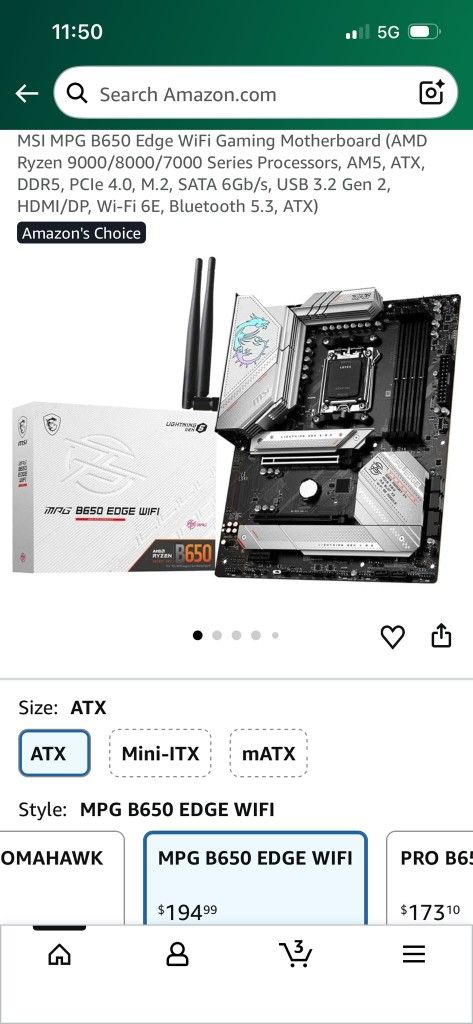 MSI MPG B650 edge wifi gaming motherboard (AMD ryzen 9000/8000/7000 series processors, AM5, ATX, DDR5, PCIe 4.0, M.2 SATA 6gb/s USB 3.2 Gen 2, HDMI/DP