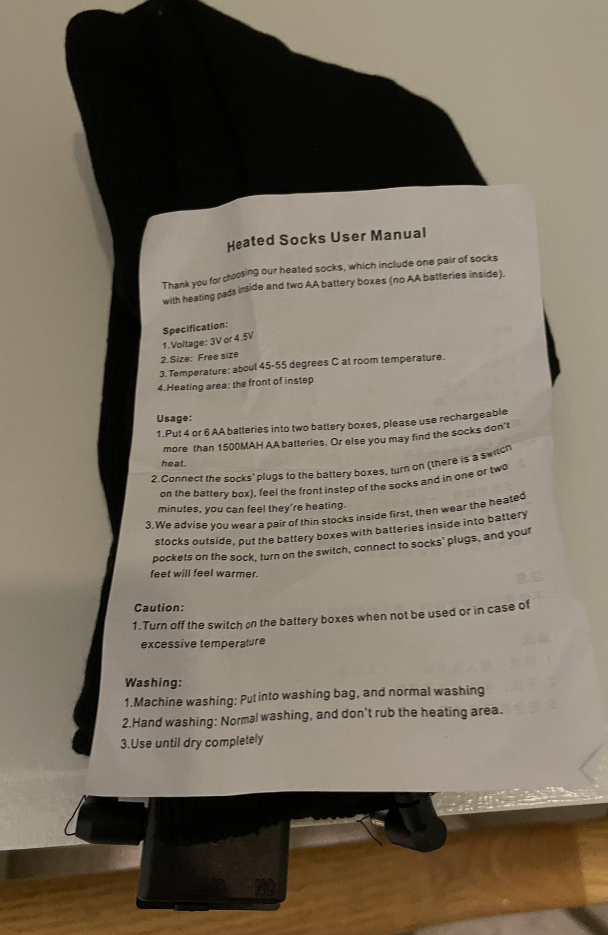 Brand new woman’s heated socks. One size. Never worn