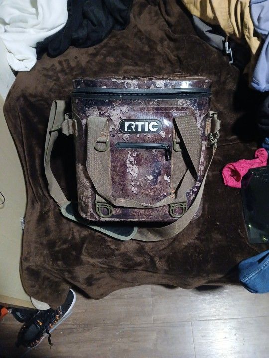 Camo RTIC soft cooler . It fits 30 cans floats on water and is 100% bad to the bone unless you catch it on fire it will last you forever.