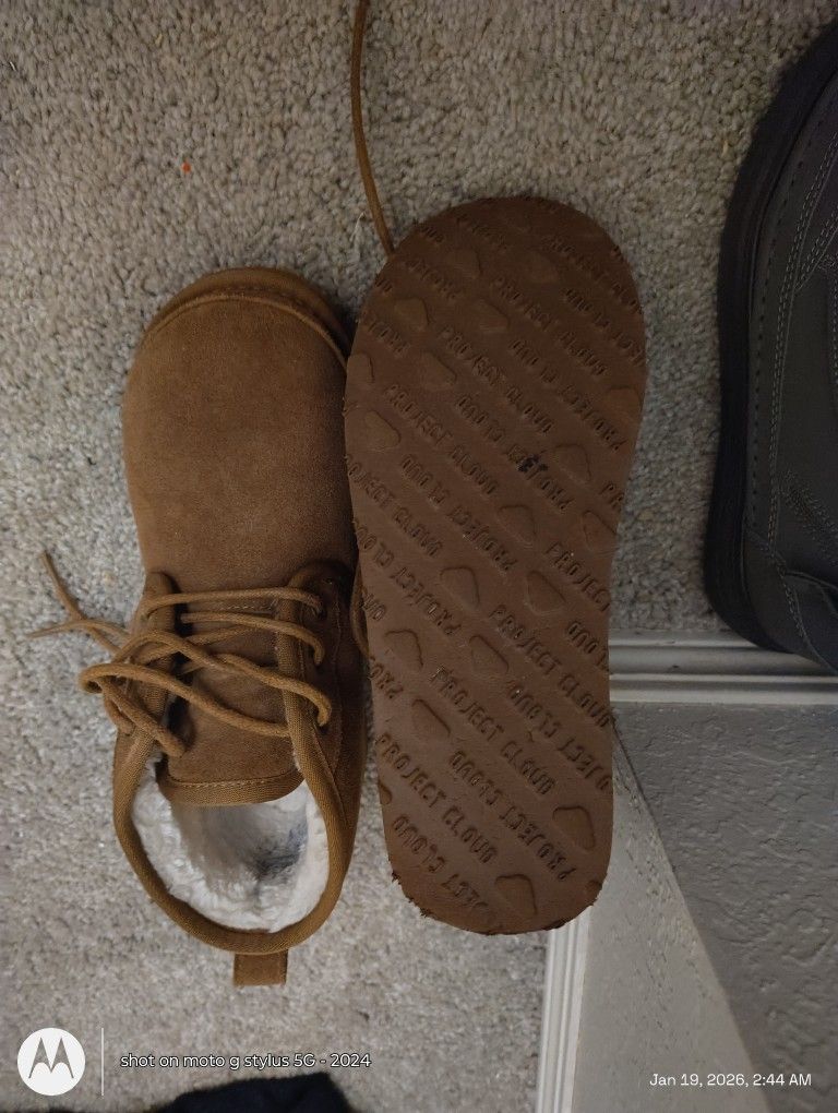 Project Cloud Women's Size 8 medium Model: Julie Color: Toasted Condition : Worn 2 -3 times Price 45.00 ( 59.00. retail) Very warm Boot, memory foam sole, Water resistant , flexible , thick Fleece liner , slip resistant , Genuine Suede quality comfy winter boot . (contact info removed)