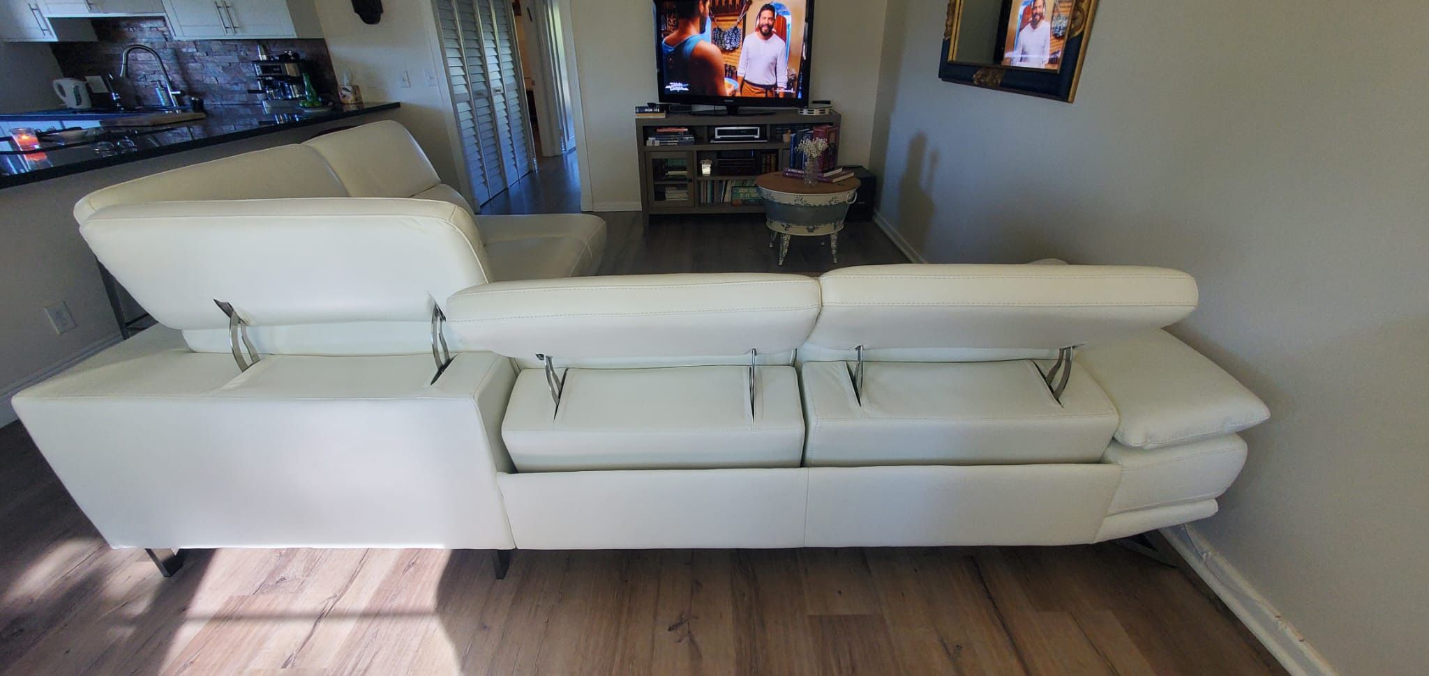 White leather couch Reclining Ready for pick up (very heavy bring personnel) Perfect condition