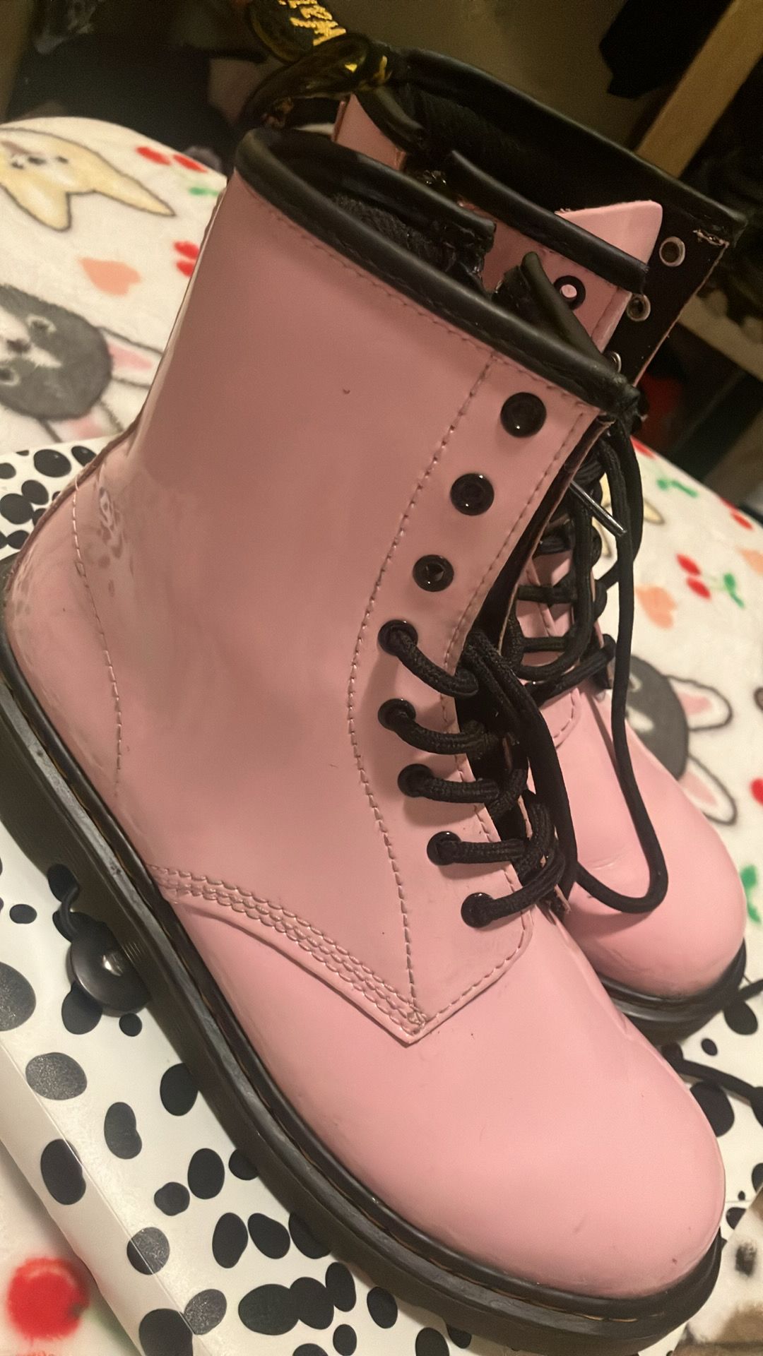 pink Dr. Martens 1460 boots. Gently worn with light scuffs from normal use. Soles are in good shape, lots of life left. Super cute size 6