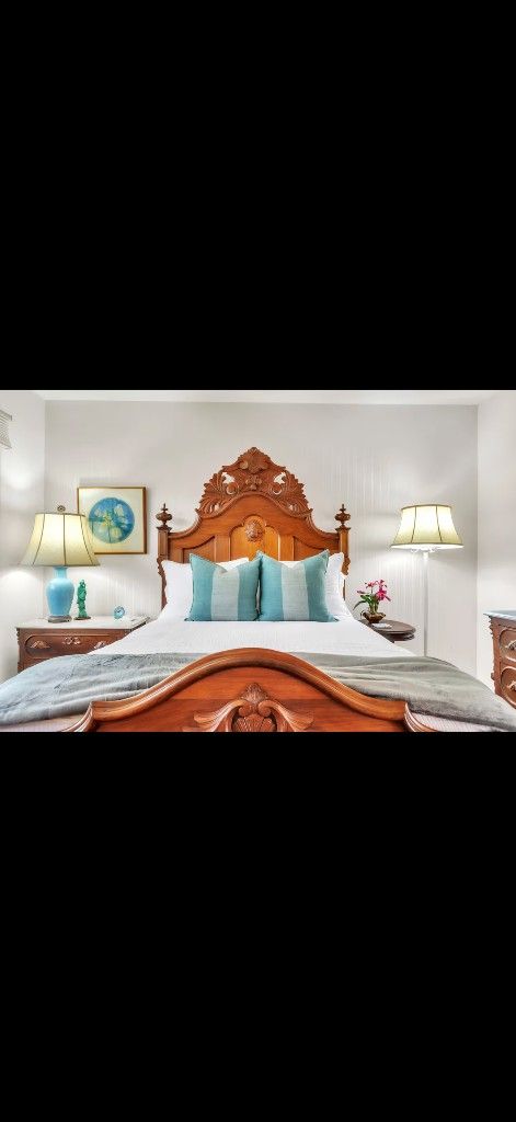 Antique Intricate Wooden Bedroom Set With Marble Table Tops
