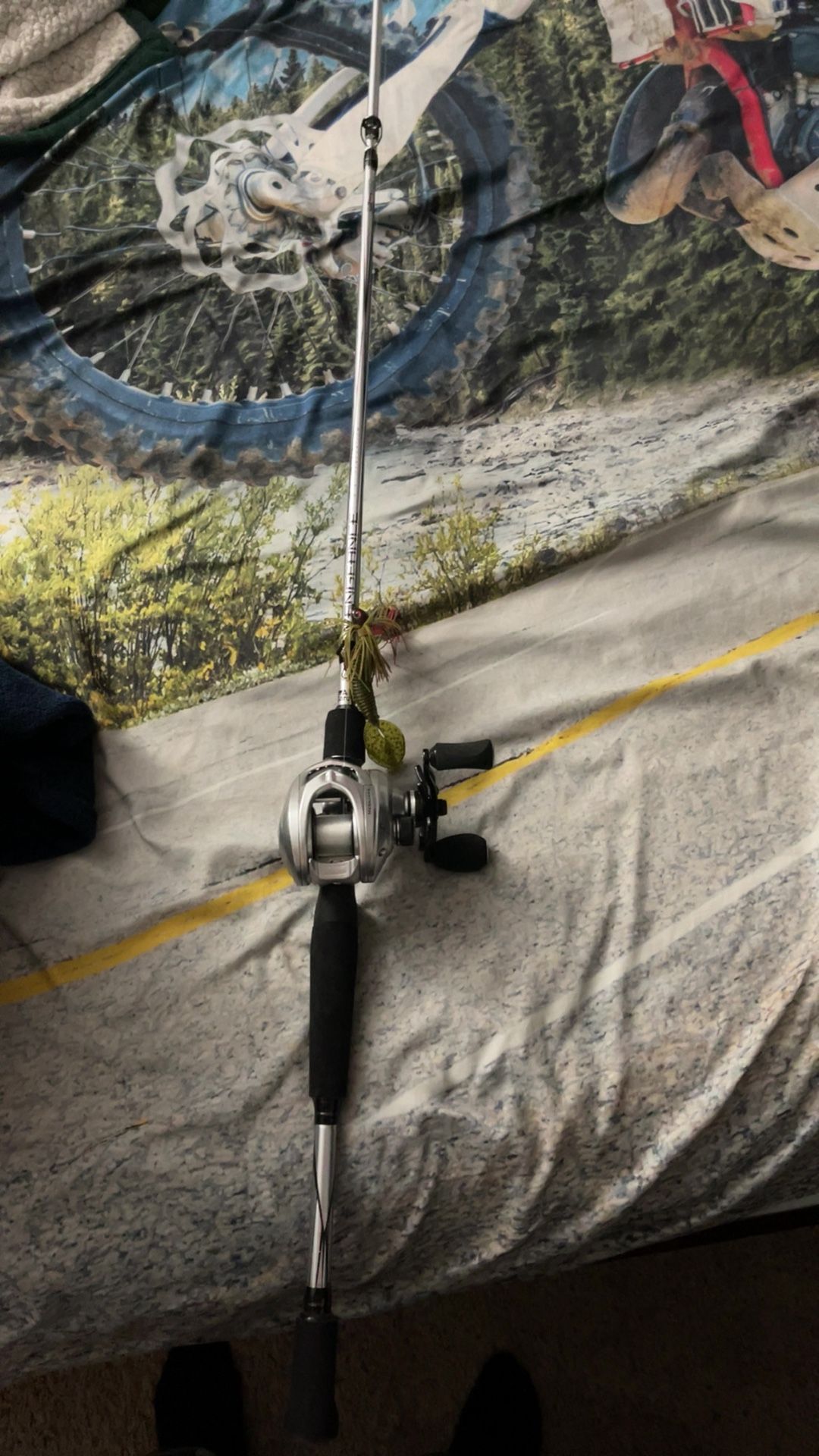 This thing is like brand new I only used it once at the lake and I barely used it so it like brand new it has a kastking baitcaster reel that’s brand new as well 120 cash only or best offer
