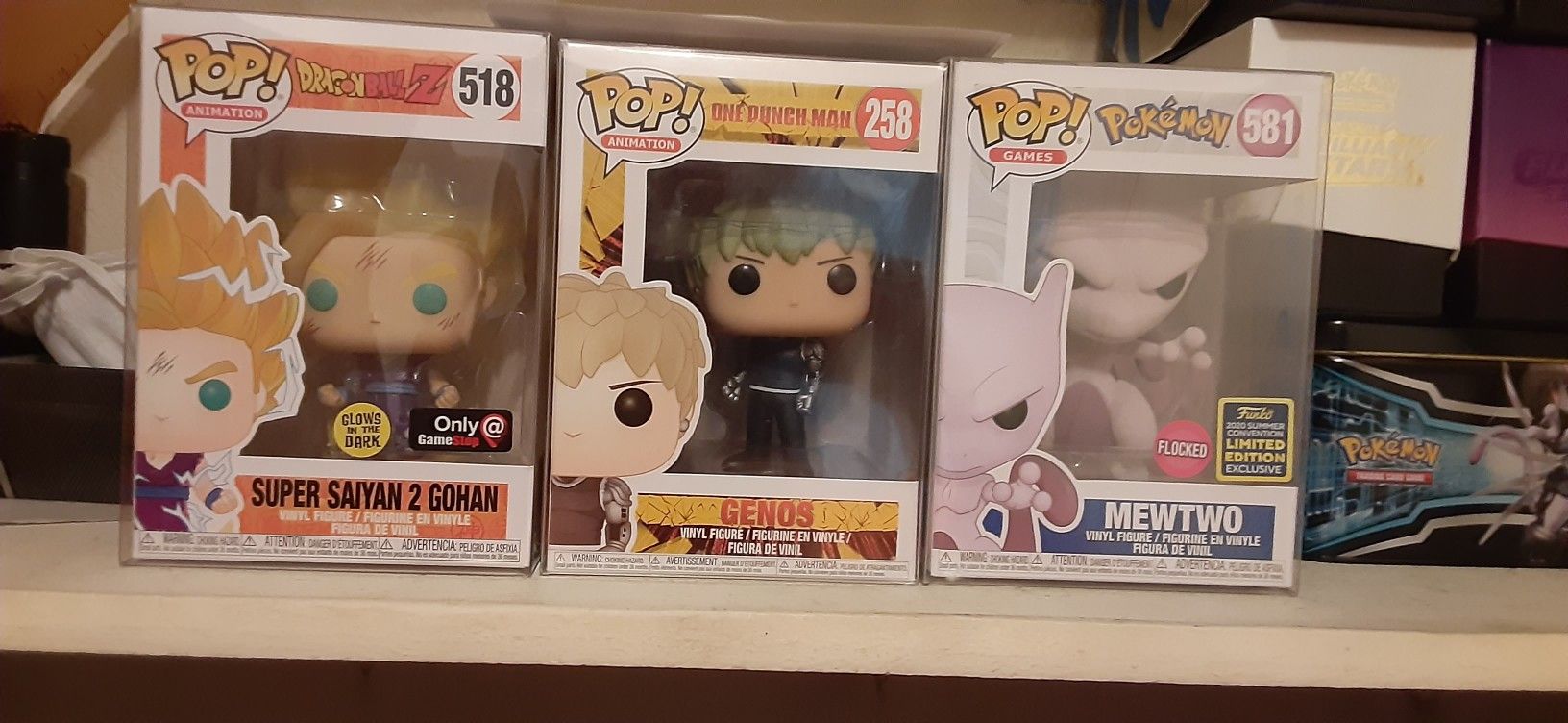 You get Gohan SSJ2 gitd, Genos & flocked Mewtwo. All in good condition.