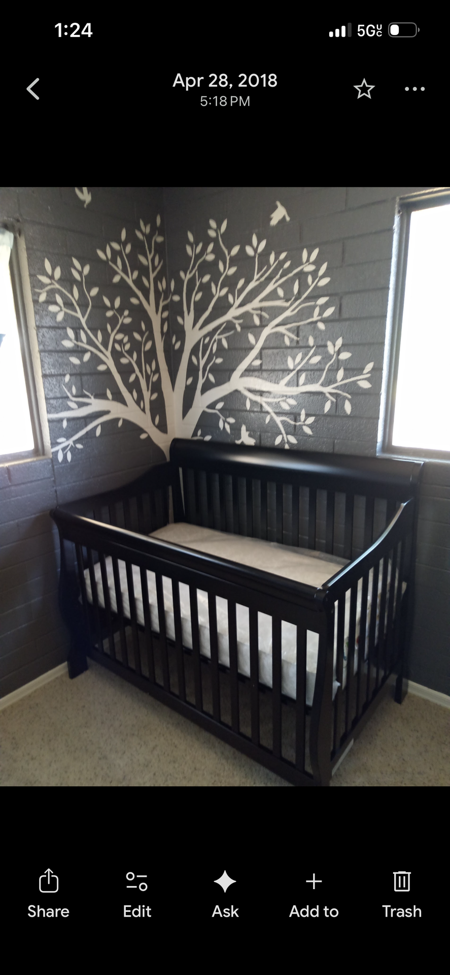 Crib is solid hardwood used like new with changing station that mounts on top of a dresser and comes with a brand new mattress 500 obo
