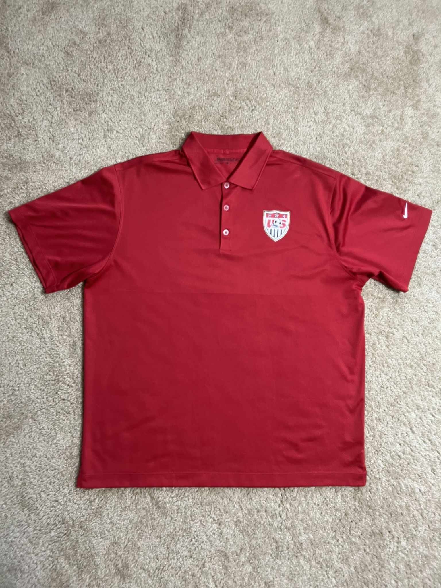 WORLD CUP NIKE FC / USA USMNT Men’s WORLD CUP SOCCER Golf Polo Shirt DRI-FIT Jersey w/ Crest Badge / Men’s X-Large XL / Like New w/o Tags!! / Red