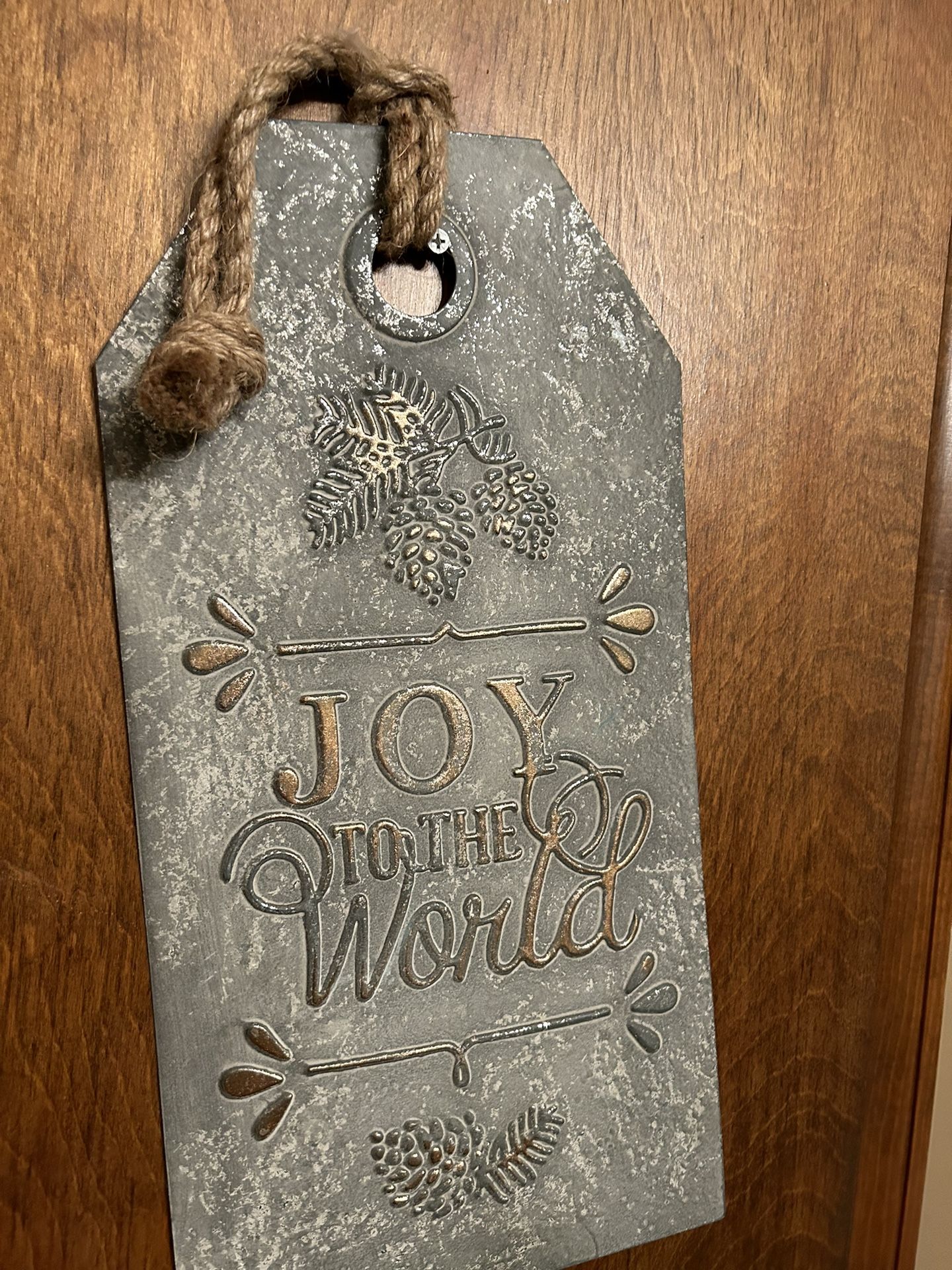 Christmas tag wall hanging decor - galvanized metal 16.5" tall Joy to the World