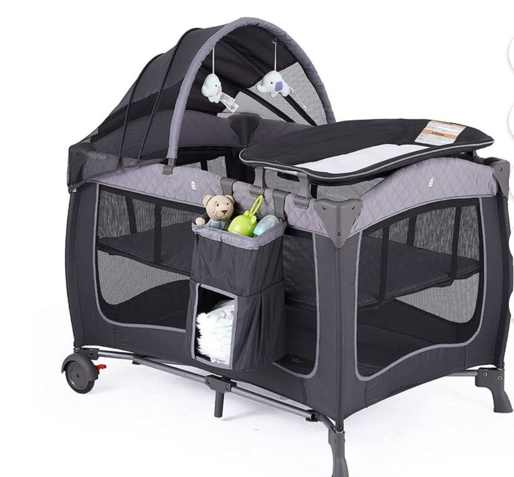 Pamo Babe Unisex Portable Baby Play Yard Include Wheels, Canopy, Changing Table for Newborn(Grey)