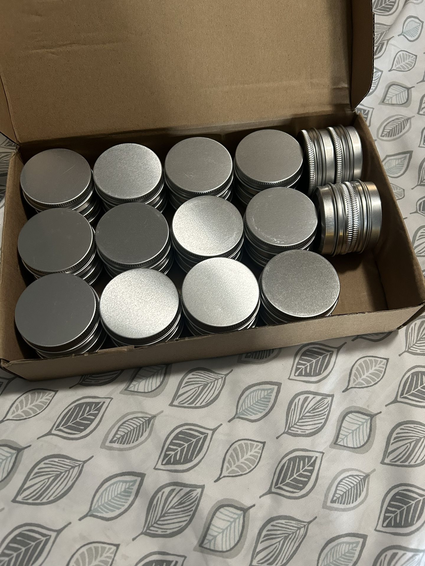 Small misc. containers perfect to add wax melt to make candles. 28 little containers $3 for all 28 tins