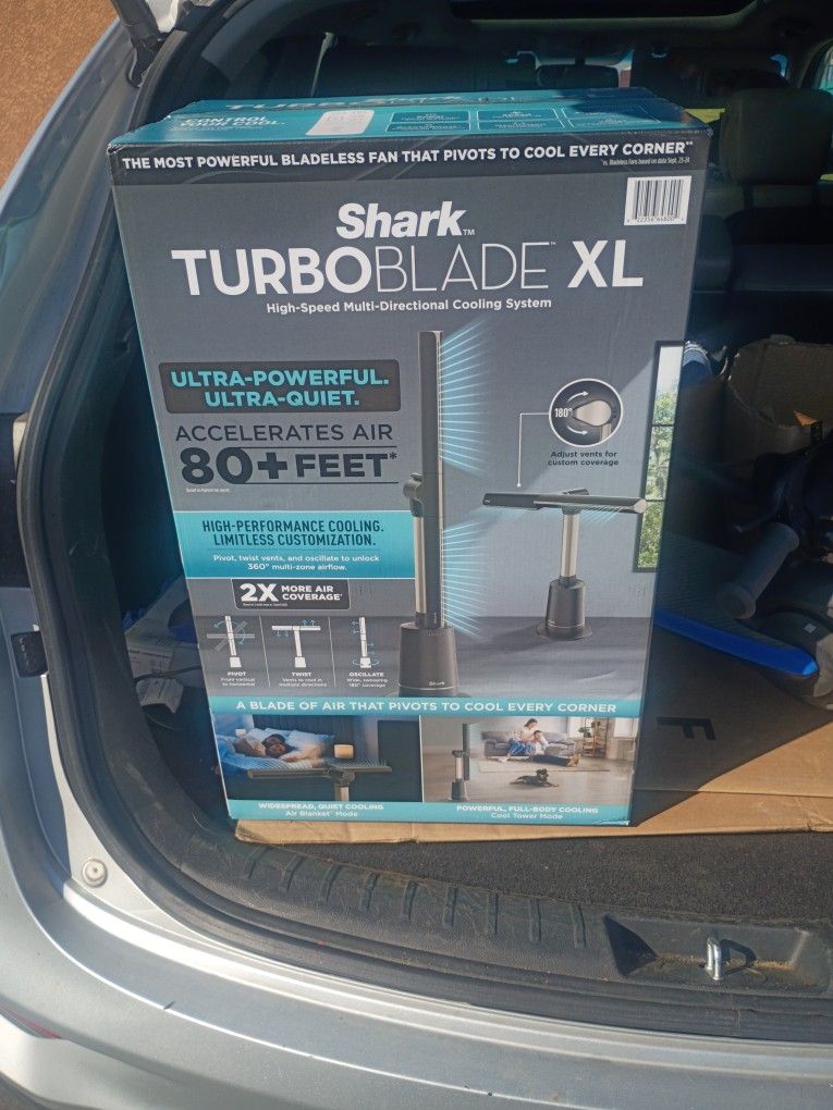 Never used in the box SHARK BLADE LESS FAN . I had purchased two of them but one covers the area needed and some so I didn't even open this one. Willing to haggle but not desperate to sale so be reasonable and respectful with offers please.