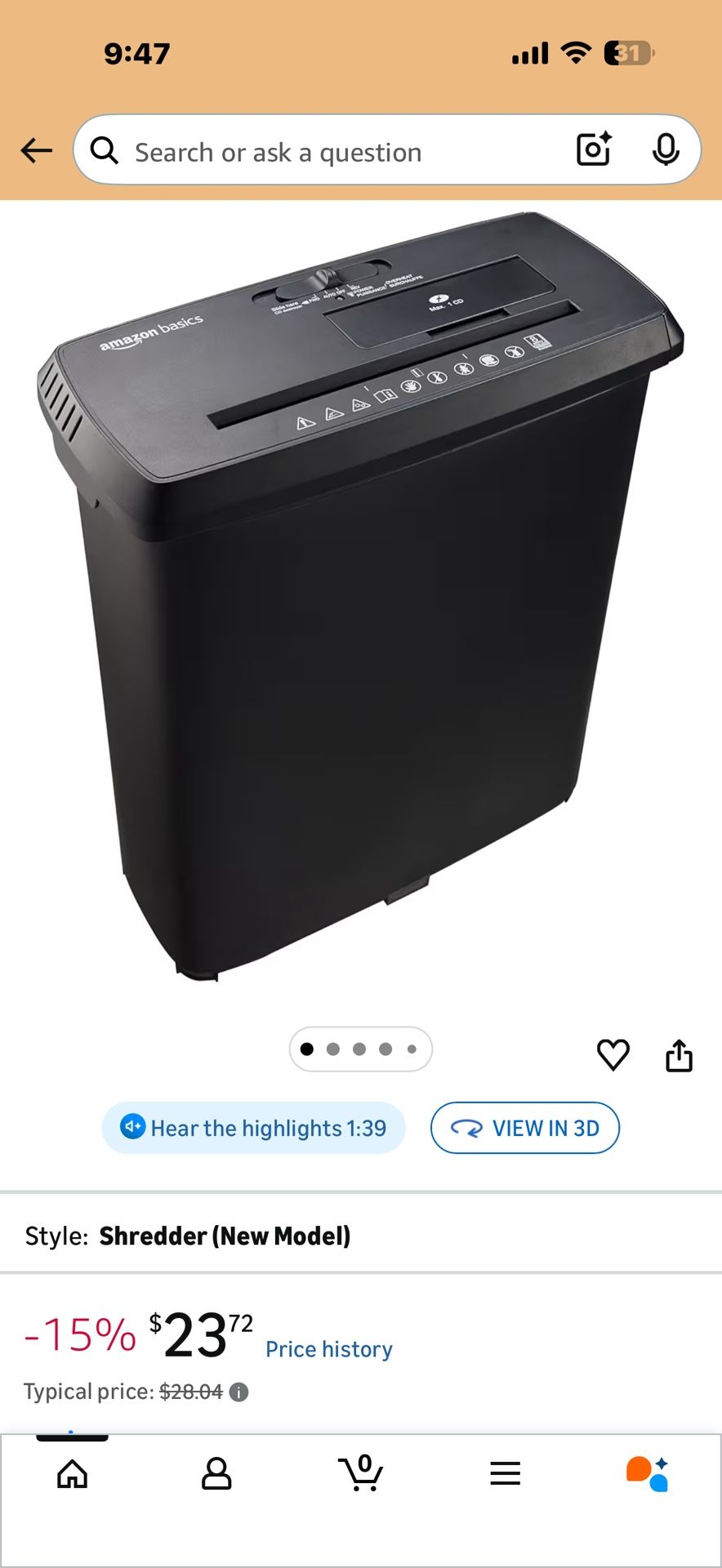 Amazon Basic Paper Shredder