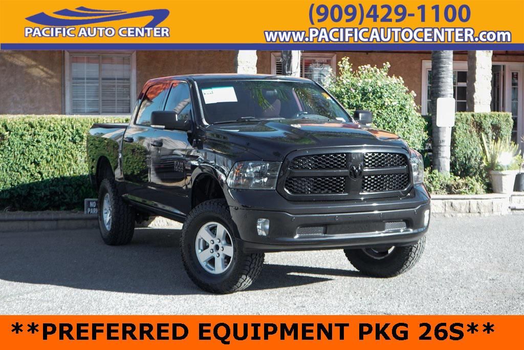 **RWD**, **CREW CAB**, **SHORT BED**, **POWER WINDOWS**, **POWER SEATS**, **POWER DOOR LOCKS**, **BACK-UP CAMERA**, **ALLOY WHEELS**, **TOW PACKAGE**, **TRAILER BRAKE CONTROL**, 1-Yr SiriusXM Guardian Trial, 115V Auxiliary Power Outlet, 8.4"" Touchscreen Display, Air Conditioning ATC w/Dual Zone Control, Apple CarPlay, Audio Jack Input for Mobile Devices, Auto-Dimming Exterior Mirrors, Auto-Dimming Rear-View Mirror, Big Horn Badge, Big Horn Regional Package, Black Appearance Package, Black Headlamp Bezels, Black Painted Honeycomb Grille, Black Ram Head Tailgate Badge, Body Color Door Handles, Bright/Bright Billets Grille, Charge Only Remote USB Port, Class IV Receiver Hitch, Dual Rear Exhaust w/Bright Tips, Electroluminescent Instrument Cluster, Exterior Mirrors Courtesy Lamps, Exterior Mirrors w/Supplemental Signals, Flat Black Ram 1500 Badge, Folding Flat Load Floor Storage, Front Armrest w/3 Cupholders, Front Center Seat Cushion Storage, Front Fog Lamps, Glove Box Lamp, Google Android Auto, GPS Antenna Input, HD Radio, Integrated Voice Command w/Bluetooth, Leather Wrapped Steering Wheel, LED Bed Lighting, Media Hub (2 USB, AUX), Overhead Console w/Garage Door Opener, Painted Front Bumper, Painted Rear Bumper, ParkSense Front/Rear Park Assist System, ParkSense Rear Park Assist System (DISC), Power 10-Way Driver Seat, Power Heated Fold-Away Mirrors, Power Lumbar Adjust, Power-Folding Mirrors, Premium Cloth 40/20/40 Bench Seat, Quick Order Package 26S Big Horn (DISC), Radio: Uconnect 4C w/8.4"" Display, Rear 60/40 Split Folding Seat, Rear Dome w/On/Off Switch Lamp, Rear Power Sliding Window, Remote Start System, Remote USB Port, Security Alarm, Semi-Gloss Black Hub, SiriusXM Satellite Radio, Steering Wheel Mounted Audio Controls, Storage Tray, Sun Visors w/Illuminated Vanity Mirrors, Universal Garage Door Opener, USB Host Flip, Wheels: 20"" x 8"" Aluminum Chrome Clad, Wheels: 20"" x 8"" Semi-Gloss Black Aluminum. HEMI 5.7L V8 Multi Displacement VVT 8-Speed Automatic**PLEASE DO NOT HESITATE TO CONTACT ANY OF OUR WELL QUALIFIED SALES ASSOCIATES FOR MORE INFORMATION ON THIS VEHICLE**PACIFIC AUTO CENTER HAS THE LARGEST SELECTION OF TRUCKS IN CALIFORNIA**PLEASE VISIT US AT PACIFICAUTOCENTER.COM.All prices plus government fees and taxes, any finance charges, any dealer document processing charges ($85), any electronic filing charge, and any emission testing charge. The Advertised Price for any vehicle does not include dealer-installed accessories. These accessories can be purchased for an additional cost; WHEELS, LIFT KITS, LOWERING KITS, TINT, PRE-INSTALLED ETCH THEFT DETERRENT, 3M DOOR EDGE GUARDS, GPS DEVICE. PLEASE CALL TO SPEAK TO A SALES ASSOCIATE FOR MORE INFORMATION!2018 Ram 1500 Big Horn 4D Crew Cab