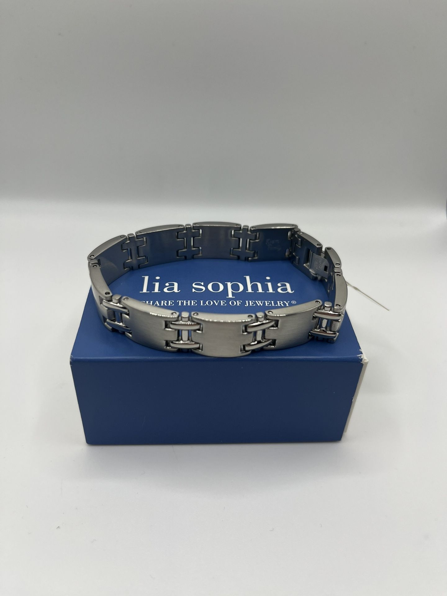 New Lia Sophia stainless steel men’s bracelet. Very cool design. Comes with box and dust bag. 8” long. From Kiam Family signature collection