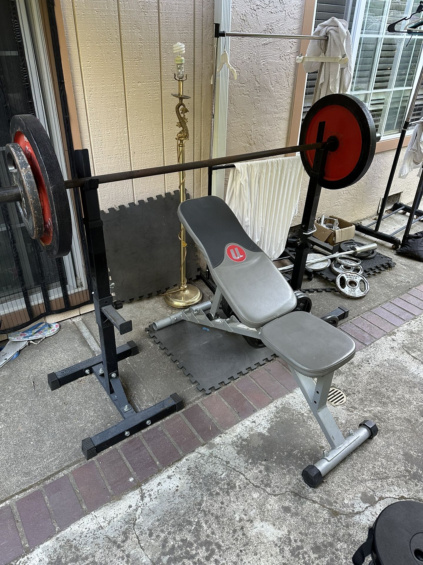 Used condition All working great Used dip bar pull up bar Brand onetwofit: up to 400lbs https://offerup.co/faYXKzQFnY?$deeplink_path=/redirect/ Used walking/ running treadmill Flat superun Up to 300lbs 3.0 mph with 7.5mph https://offerup.co/faYXKzQFnY?$deeplink_path=/redirect/ Bench press/ squat rack With 25lb bar Weights 2-45 2-25 8-10 2-5lbs Have curl bar Kettle bell free weight Land mine 2 bench press All for 300$ You pick up