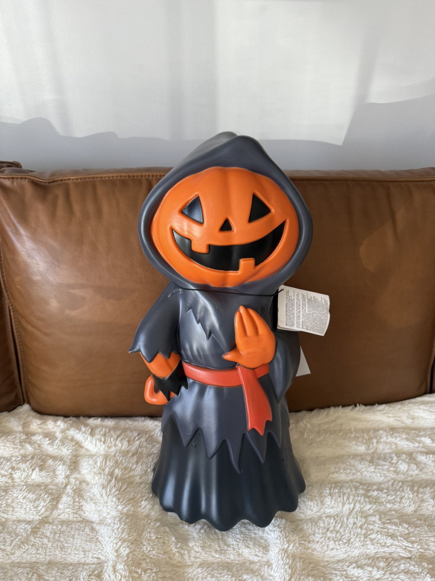 The 18" Blow Mold Lewis Ghoul Halloween Decorative Prop by Hyde and Eek is a spooky addition to your Halloween decor collection. Made of durable black plastic, this prop features a funny and festive design perfect for adding a touch of whimsy to your holiday celebrations. With its retro aesthetic and eye-catching color, this collectible piece is sure to be a hit at your Halloween gathering in the year 2024. Comes from smoke free home!