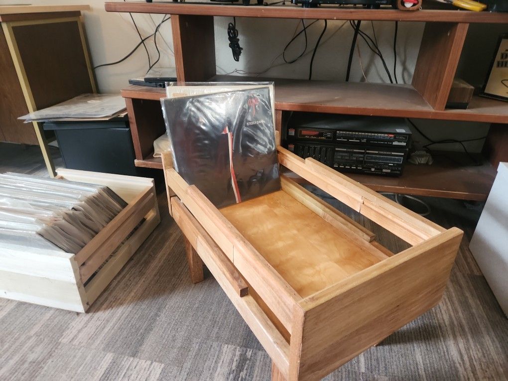 Alubum caddy solid maple with solid oak legs hold approximately 150 albums