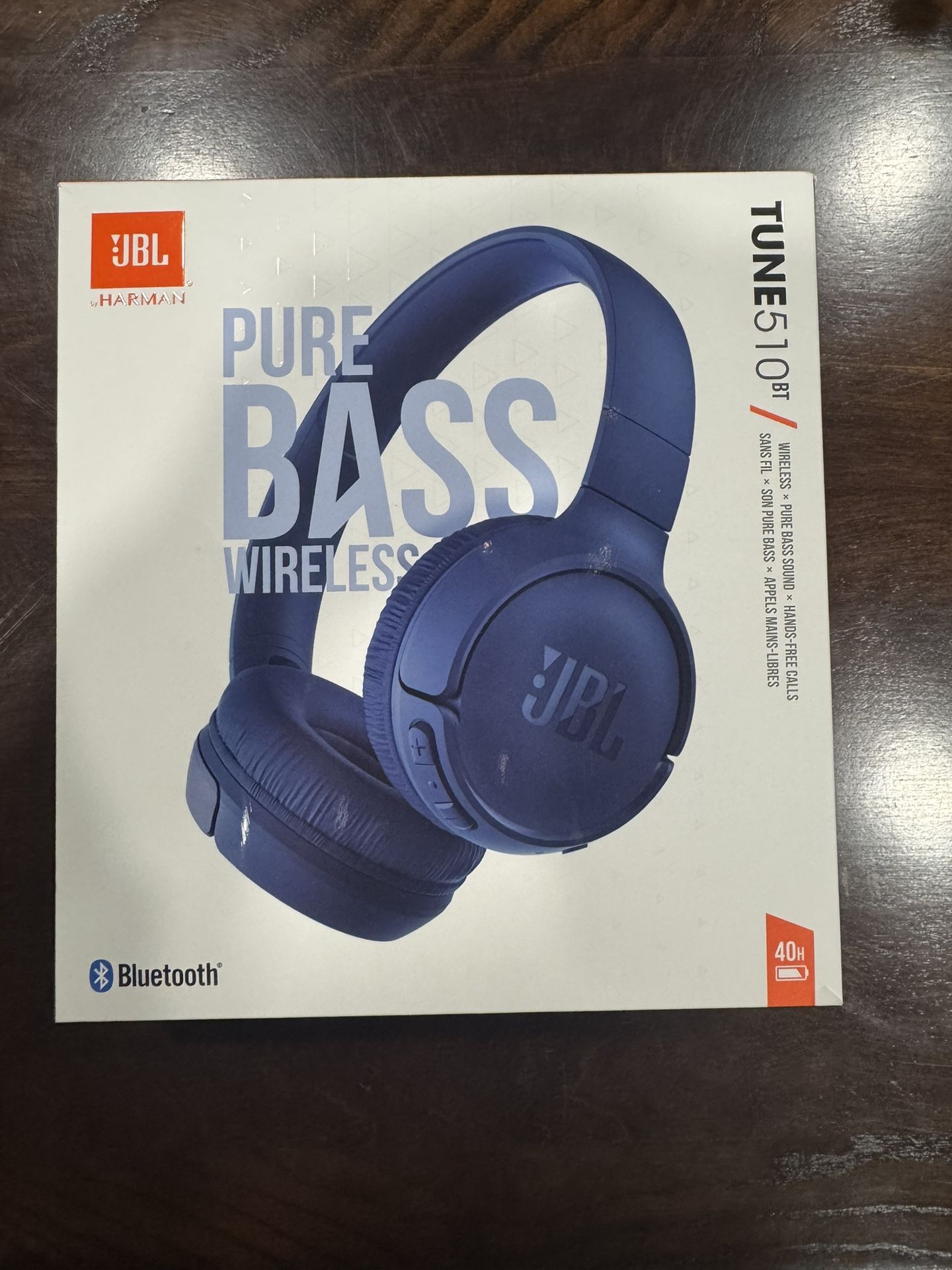 Brand new sealed JBL Tune 510BT - Bluetooth headphones with up to 40 hours battery, microphone for call, foldable and comfortable, Android and iOs compatible (Blue) JBL PURE BASS SOUND: These wirelss headpones feature the renowned JBL Pure Bass sound, which can be found in the most famous venues all around the world. WIRELESS BLUETOOTH: These headphones stream wirelessly from your device and can even switch between two devices so that you don't miss a call. UP TO 40 HOURS BATTERY WITH SPEED CHARGE: For long-lasting fun, listen wirelessly for up to 40 hours and recharge the battery in as little as 2 hours with the convenient Type-C USB cable. A quick 5-minute recharge gives you 2 additional hours of music. MICROPHONE ON EAR CUP FOR HANDS-FREE CALLS: Easily control your sound and manage your calls from your headphones with the convenient buttons on the ear-cup. ASK SIRI OR HEY GOOGLE: Siri or Hey Google is just a button away: activate the voice assistant of your device by pushing the multi-function button. Featuring an adjustable headband the Tune 510BT are designed to fit nearly any head size comfortably