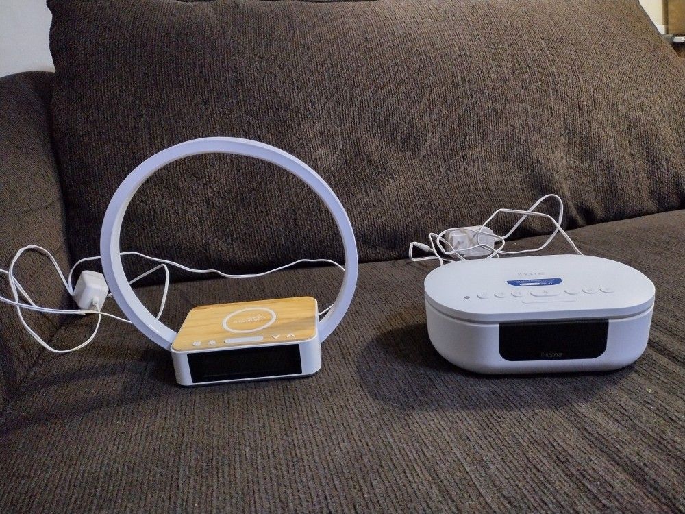 Both used but in very good condition. I home has Bluetooth speaker, uv sanitizer, alarms and charging port. The amouhom has alarms, charging station and lights. Asking $35 for I home and $25 for amouhom.