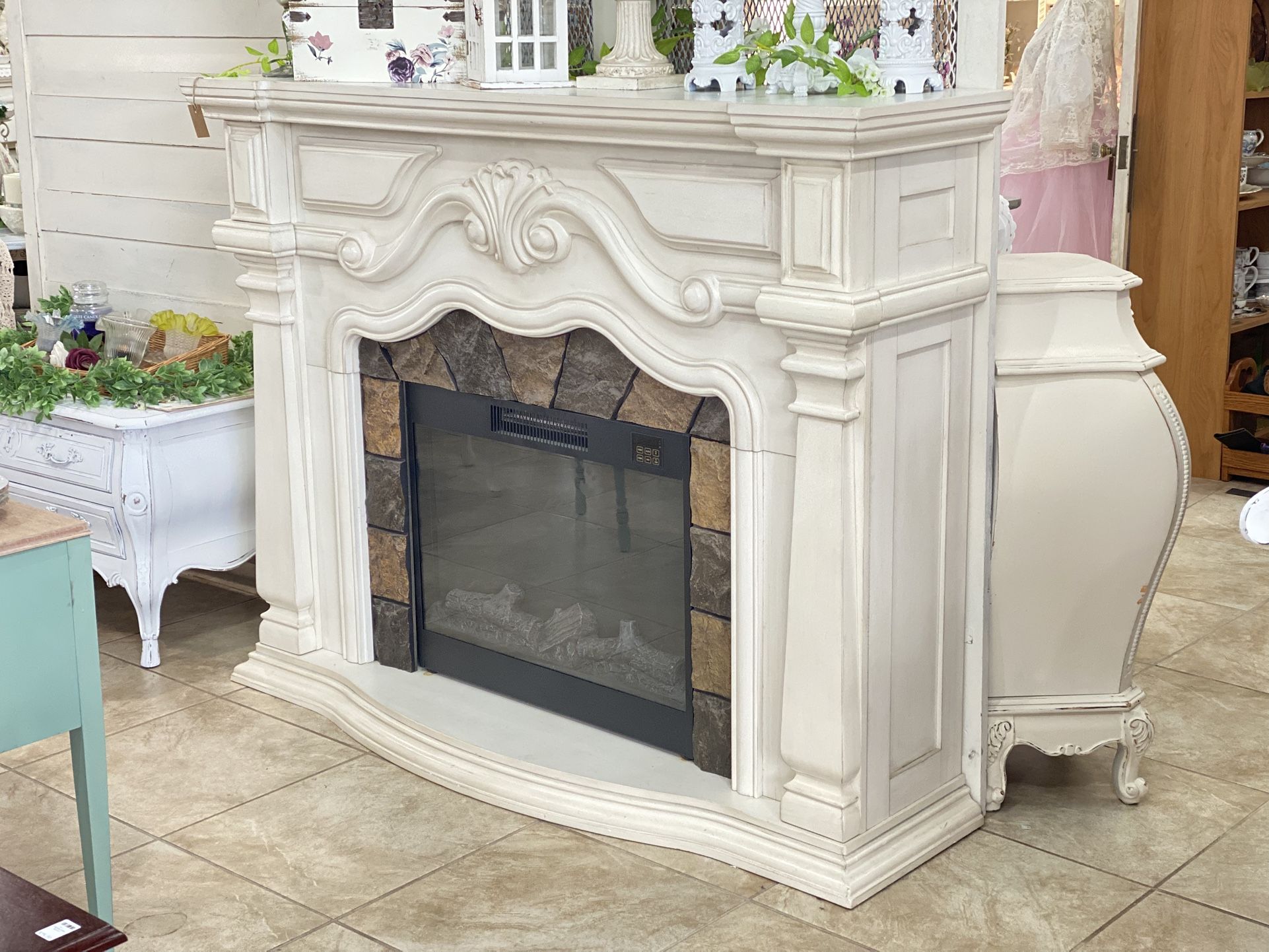 Beautiful Electric Fireplace 62W 16D 48H We are located at Trellis Boutique vintage shop at 16317 Pacific Ave South Spanaway, WA 98387. Please inquire for delivery 🚚 Open hours: Monday 10am-2pm Tuesday-Saturday 10am-5pm