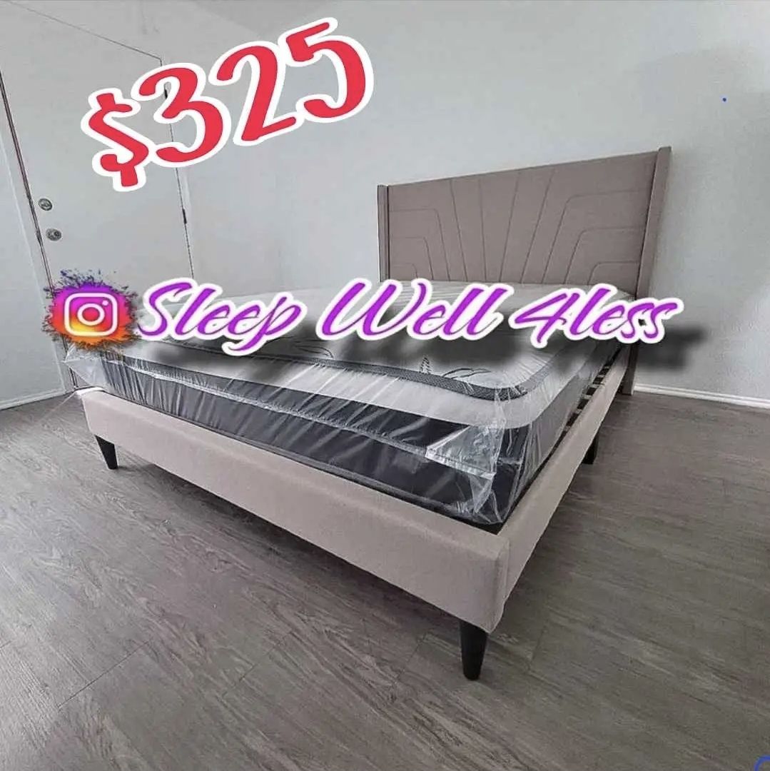 NEW QUEEN BED FRAME COMES IN THE BOX 📦 MATTRESS INCLUDED SAME DAY DELIVERY OR PICKUP PAY CASH 💲 ZELLE CREDIT CARD FINANCE AVAILABLE ONLY $20 DOWN TO GET APPROVED HABLAMOS ESPAÑOL FINANCIAMENTO DISPONIBLE