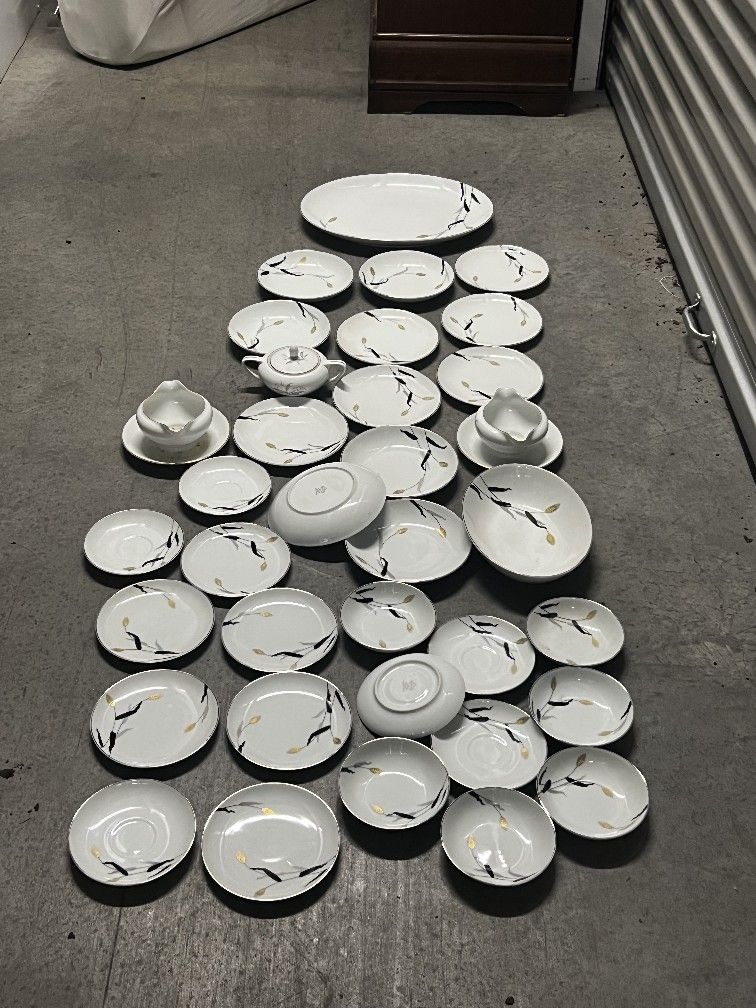 35 piece fine china set, hand crafted and in excellent condition, no chips or scratches, see through porcelain, beautiful set and willing to negotiate.