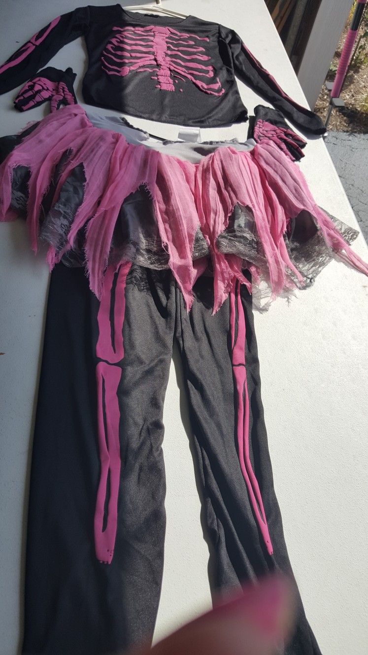 Kids Size 10/12 skeleton costume,w tutu, separate piece from pants and Skeleton hands as well
