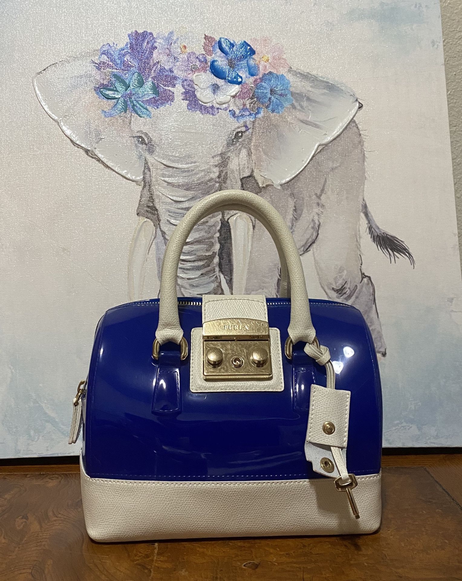 Pre-loved FURLA Bag looks like new! The combination is Blue and White. Its made of candy jelly and leather. It comes with original dust bag and key. Its in mini size. Very clean inside and out It has a hologram.