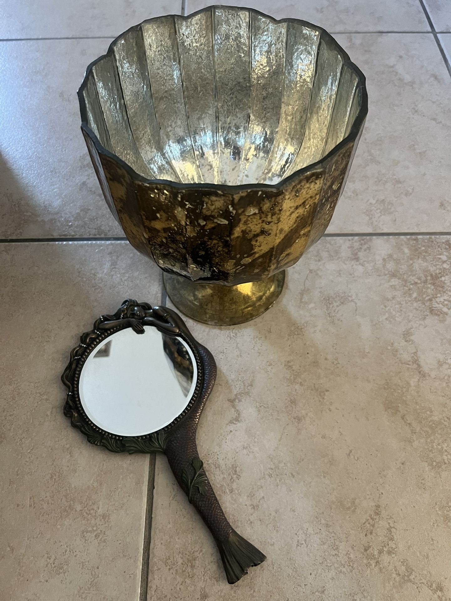 antique gold vase and vintage mermaid handheld mirror la mesa pickup only cash preferred