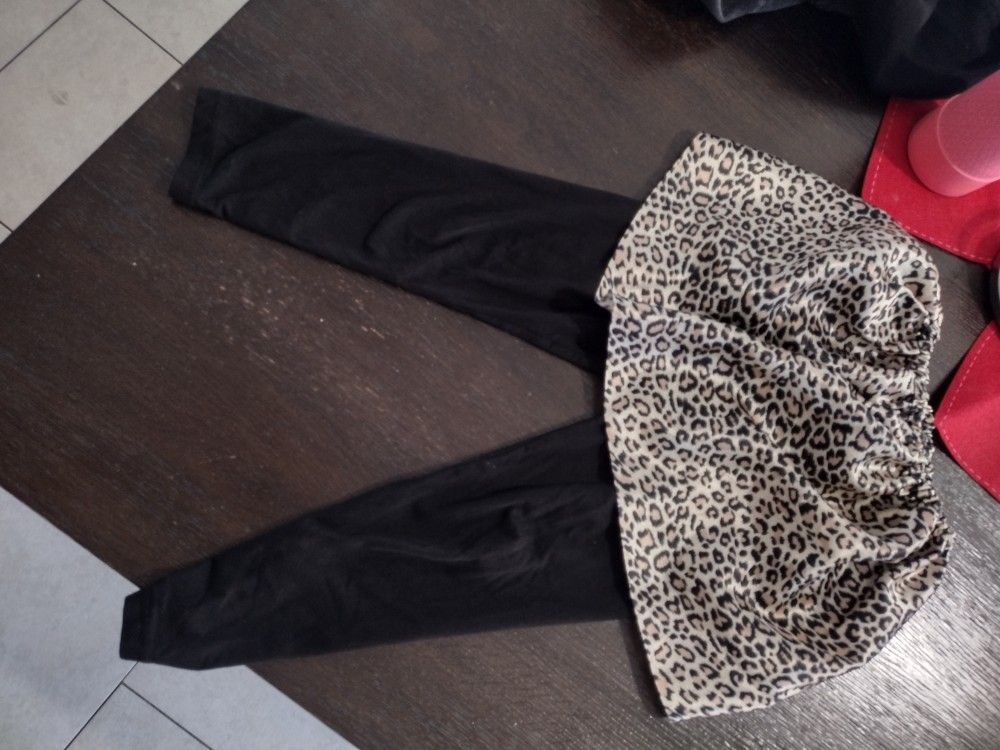 Leopard ballerina skirt with black leggings for girls. Size 6.