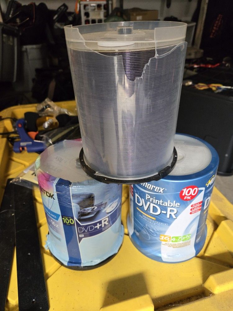 300 DVD+R and DVD-R. No use for them. Still around 30 bucks each on Amazon. Take em all for 30!
