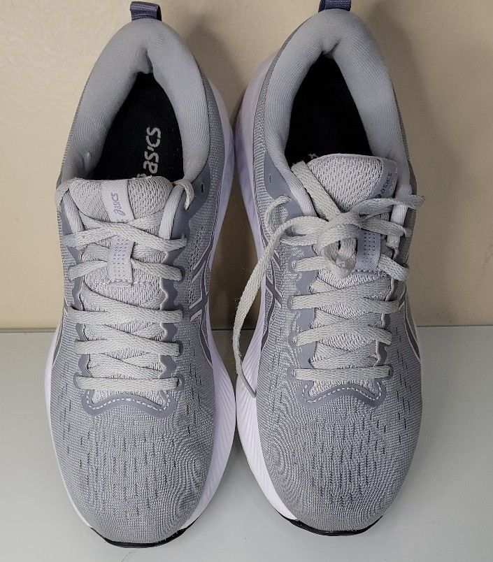 The Asics Gel Excite 10 Sheet Rock Cosmos sneakers in size 8.5 are a stylish and high-performance athletic shoe designed for women. Featuring a breathable mesh upper, these sneakers provide comfort and support for active individuals. The gray colorway adds a versatile touch to any outfit, making them perfect for both casual wear and sports activities. With the signature ASICS Gel cushioning technology, these sneakers offer excellent shock absorption and impact resistance, ensuring a comfortable and stable fit for all-day wear.