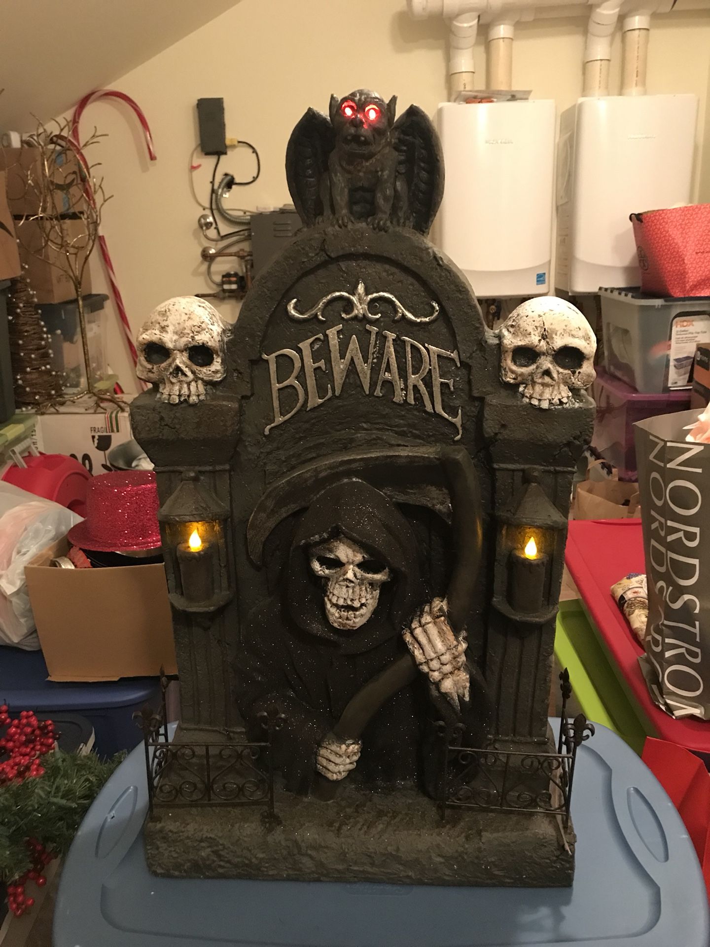 Excellent condition grave stones made from resin, not cheap styrofoam. Large on has sound and lights $75 2 smaller ones just have lights $40 ea