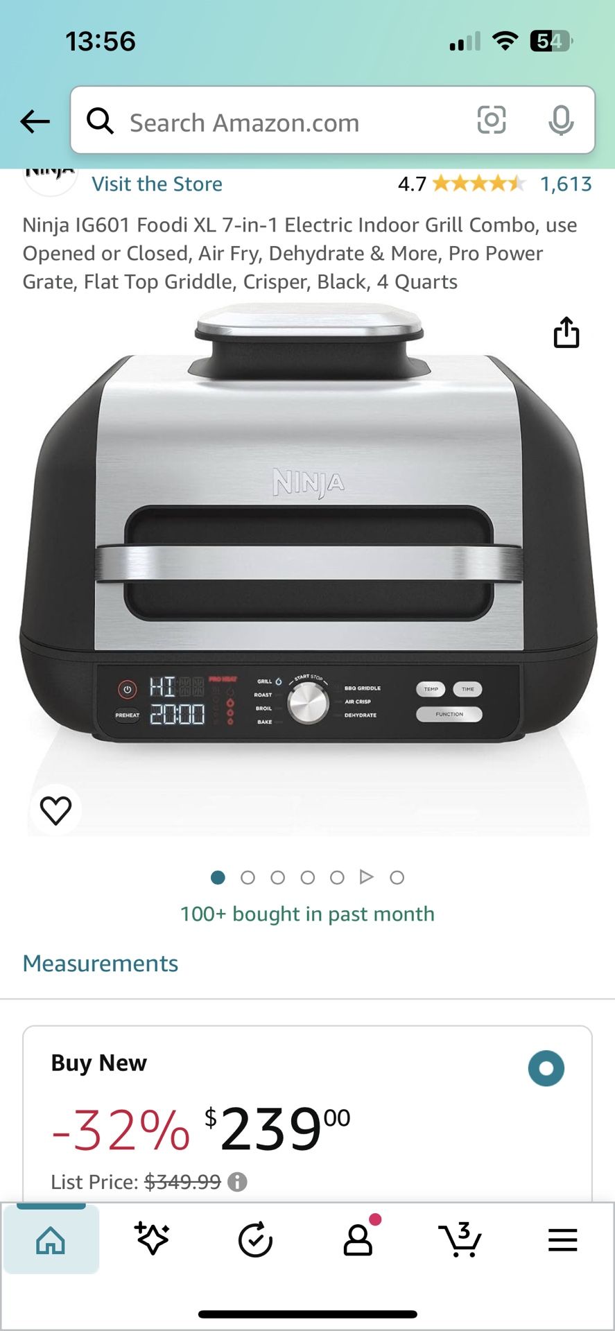 Ninja IG601 Foodi XL 7-in-1 Electric Indoor Grill Combo, use Opened or Closed, Air Fry, Dehydrate & Flat Top Griddle, Crisper, 4 Quarts Only used twice., no longer need this one. Practically new.