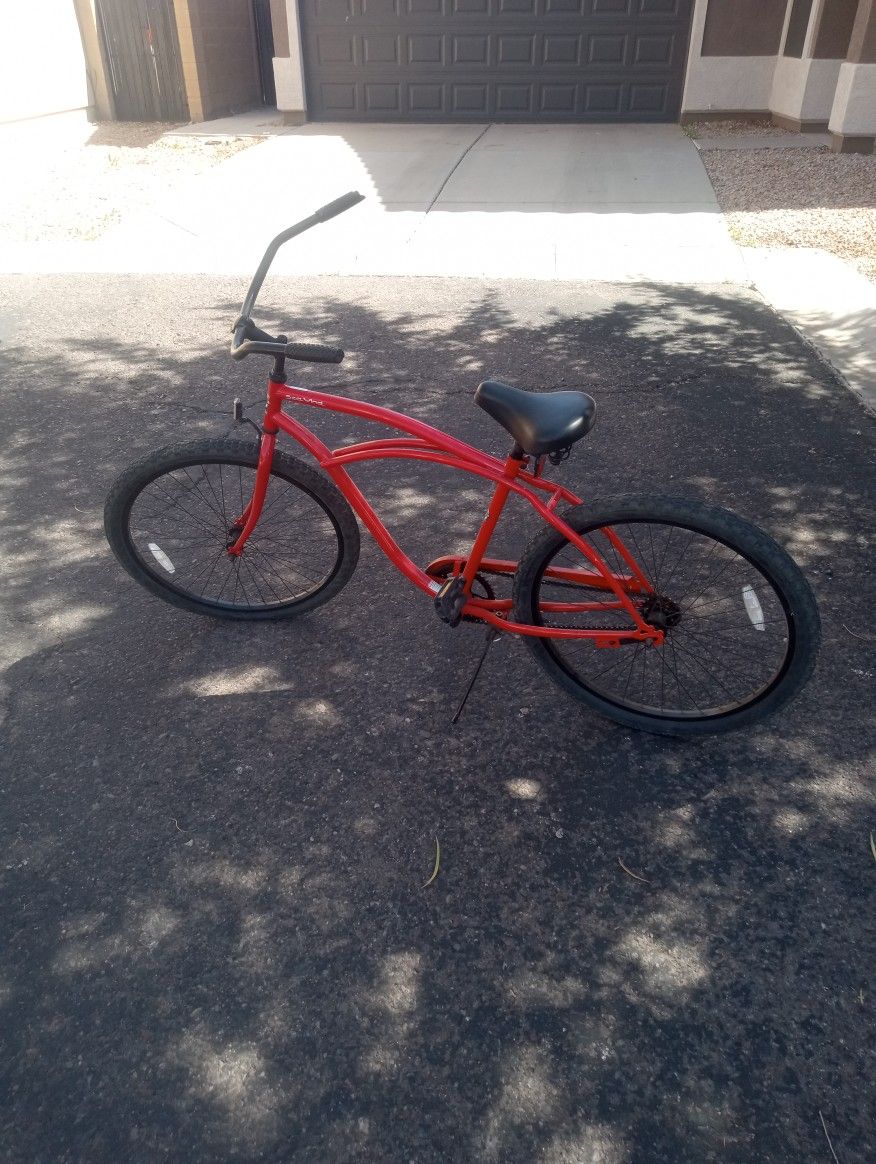 26 in Beach cruiser cherry red rides great probably ridden 5 times by my mom.