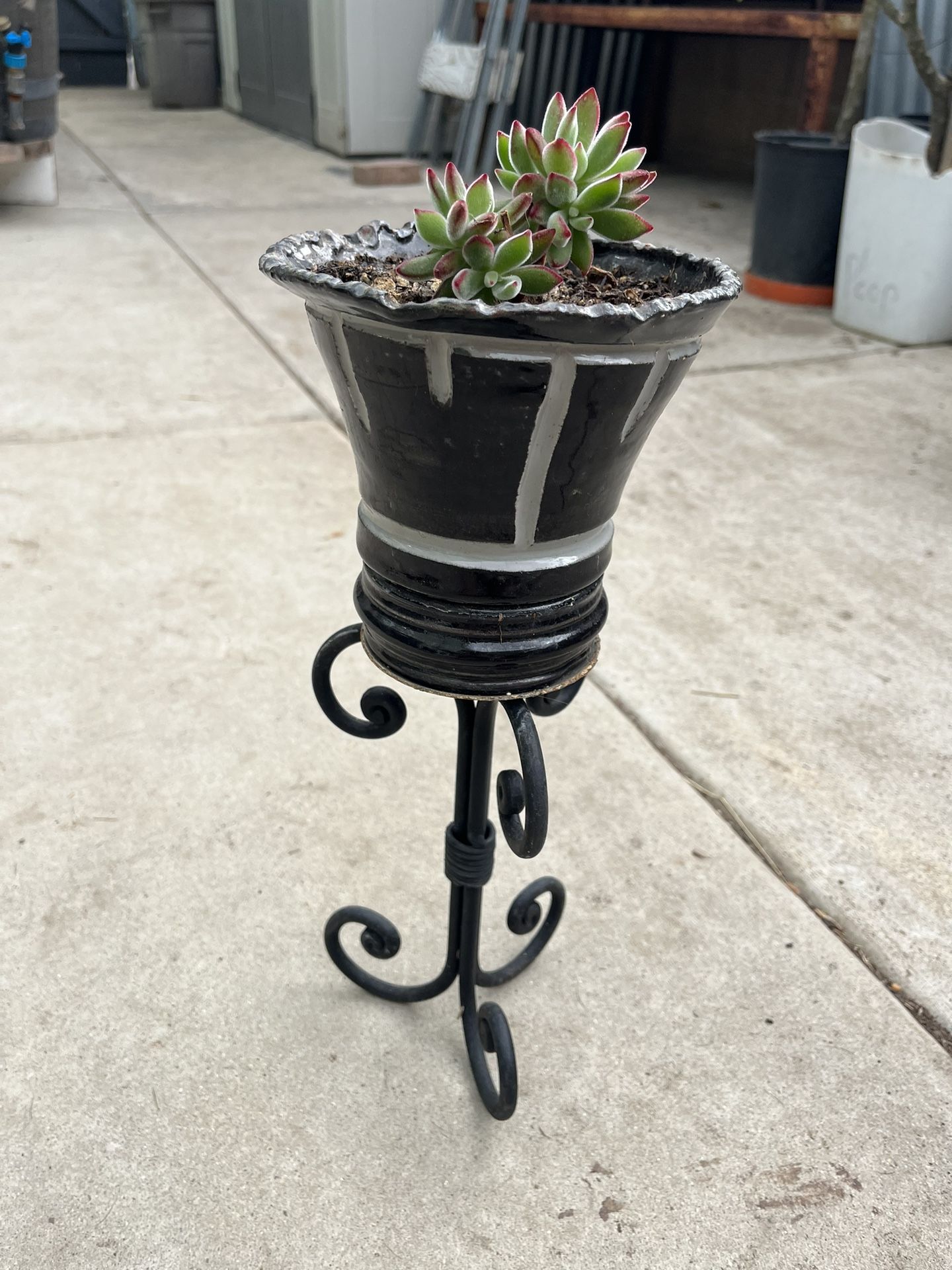 Hand Crafted ceramic pottery. Cute little succulent plant that blooms often.