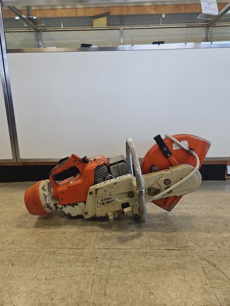 Pre-owned. 2 stroke. Designed for 12" abrasive or diamond wheels. Come see us at American Pawnbrokers 5402 Pacific Ave. Tacoma WA 98408. Hours: Monday thru Friday 7:45am to 6pm. Saturday: 7:45am to 2pm. Sunday: Closed.
