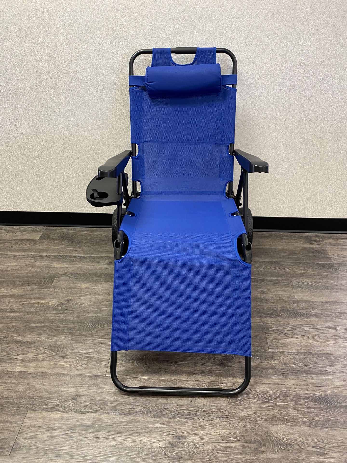 Folding Beach Lounge Chair w/ Wheels – Reclining, Cup Holder (New)