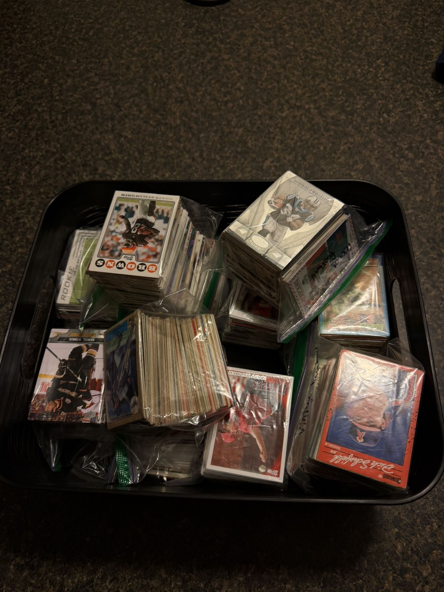 Whole sports card collection -Baseball, football, hockey -Lot of vintage cards -No clue how much any of it is worth I haven’t done any research on them just don’t need them -I think there’s some pretty cool cards though -message me with any questions -or best offer