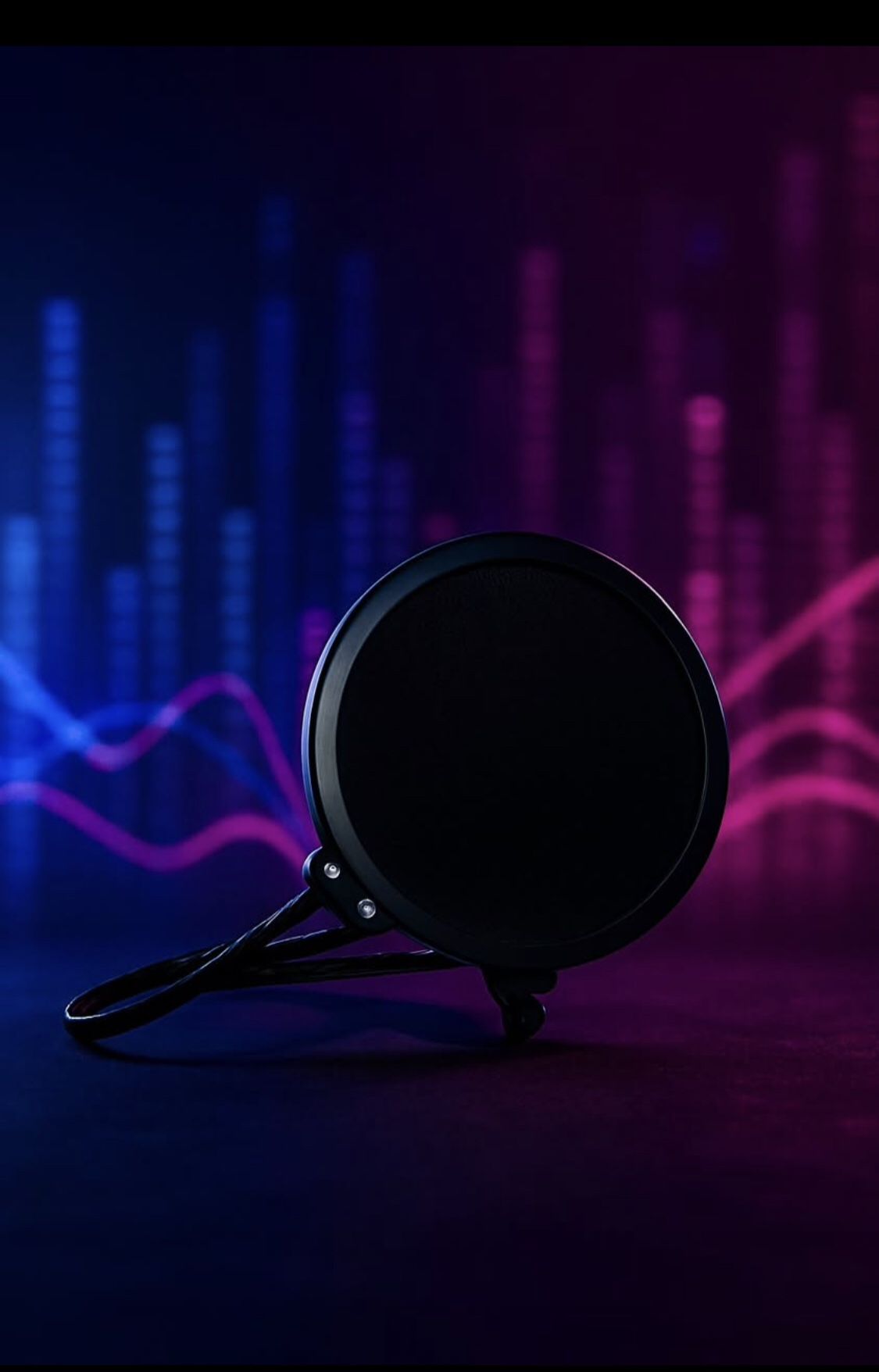 Round mesh pop filter designed to reduce plosive sounds during recording. Features a flexible gooseneck arm and clamp for easy attachment to microphone stands. Ideal for podcasting, streaming, and studio vocals.