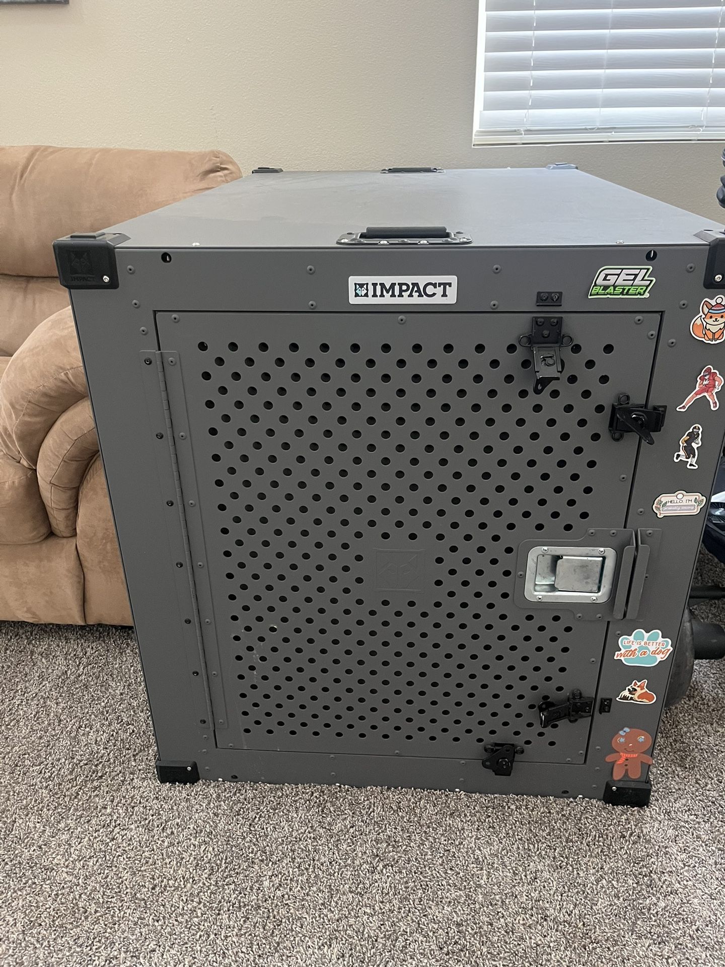 4’ deep 32” wide 35” tall Largest size they make for high anxiety dog 4 butterfly latches