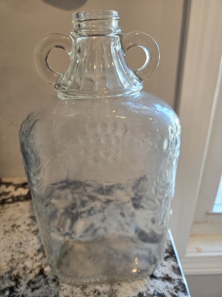 Fun vintage decorative glass jug. Half Gallon size. Local delivery available.