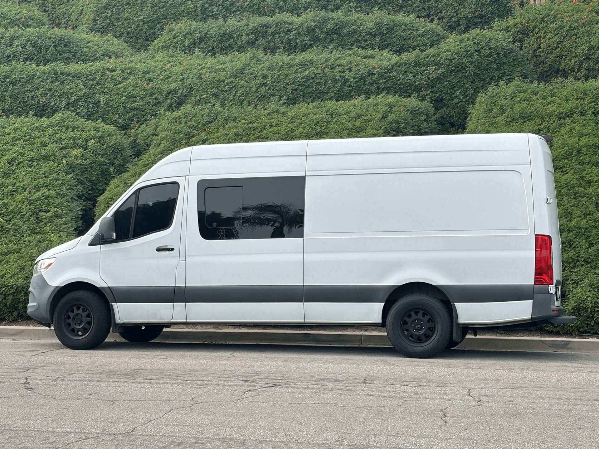 2021 Mercedes Benz Sprinter cargo van - 170” wheelbase, high roof. Rear wheel drive. 2.0 liter 4 cylinder gasoline engine. 2.4 14 16V GDI DOHC turbo engine. Arctic white exterior. Black cloth interior bucket seats. Back up camera. Wanted to use it for long road trips while attempting to get an expedited shipping business off the ground. Business did not take off and can’t afford to keep it for recreation. CUSTOMIZATIONS: Black Rhino matte black wheels, all terrain tires; new side cargo windows with sliders purchased from and installed by VanTek in Huntington Beach; interior ceiling and walls insulated and paneled; LVP flooring; upgraded RV roof vent fan 12 V DC 14” quiet roof fan with rain sensor, 10 speed, reversible (needs to be hooked up to power to work). Approximately 128,158 miles - mostly over the road highway miles. Most maintenance done ourselves. Transmission service by Mercedes-specialist mechanic in San Clemente, CA. Much loved. Hate to have to let this go because it was an awesome camping vehicle and vehicle to take to the dirt bike track and camp out of but closed the LLC and cannot afford to keep. $29000.00. No trades
