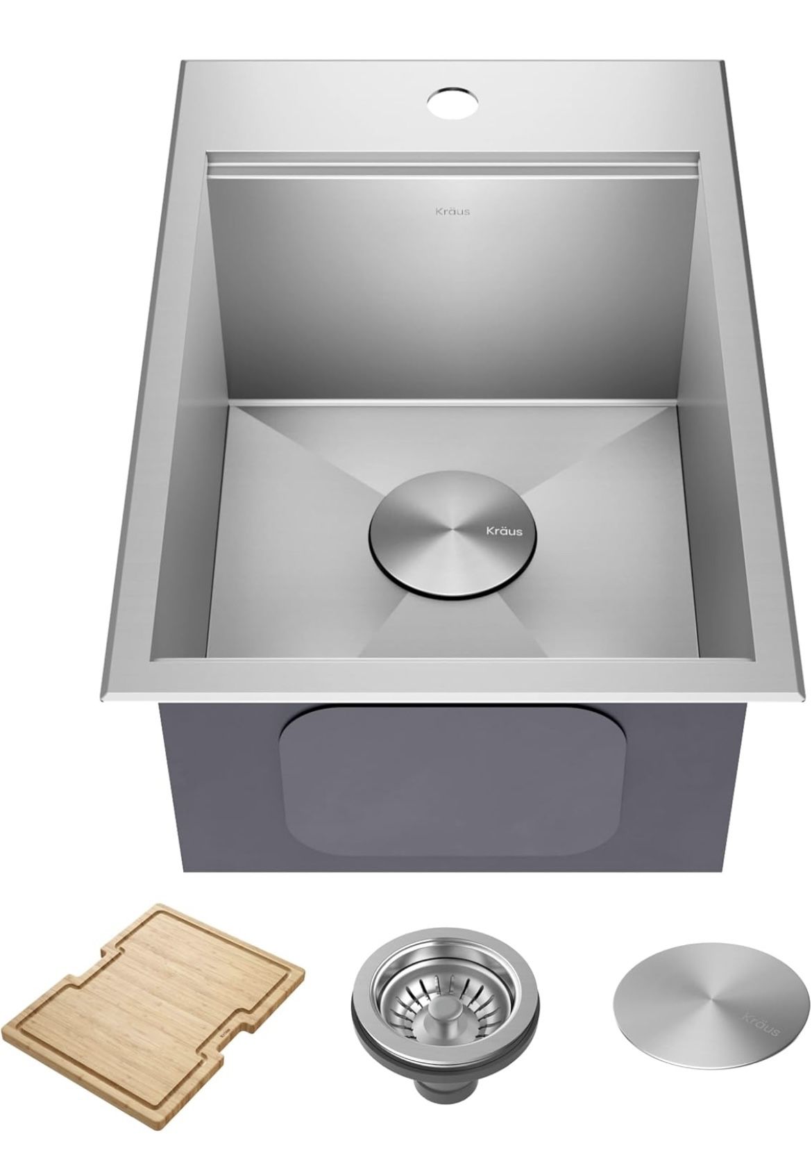 New KRAUS Kore 15x22-Inch Drop In/Top Mount Workstation 16 Gauge Single Bowl Stainless Steel Bar Kitchen Sink with Accessories, Kitchen Sinks
