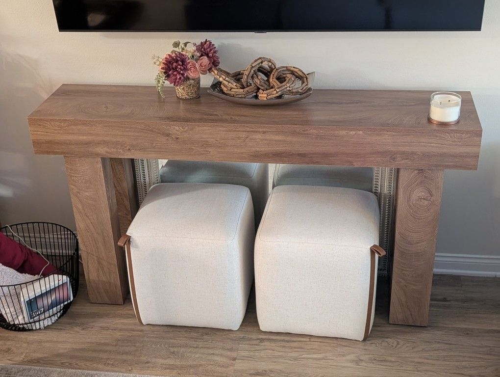 Local pick-up only *Offer Up in-app payment, PayPal, or Cash only Modern Farmhouse Console Table – 63” Solid Wood Look Beautiful 63-inch console table in a modern farmhouse / rustic style. Originally purchased from Amazon (Tribesigns) and used lightly. Sturdy, heavy, and very stylish — perfect behind a couch, in an entryway, hallway, or living room. Details: Brand: Tribesigns Length: 63 inches Color: Natural wood finish Style: Modern farmhouse / rustic / minimalist Condition: Excellent – no damage Very solid and stable (not flimsy) Clean lines with thick legs and tabletop Great for: Sofa / couch table Entryway or foyer Hallway accent TV or decor console Home staging Color Natural Shape Rectangular Item Dimensions D x W x H 13.77"D x 63"W x 33.46"H Item Weight 54lbs Maximum Weight Recommendation 198lbs