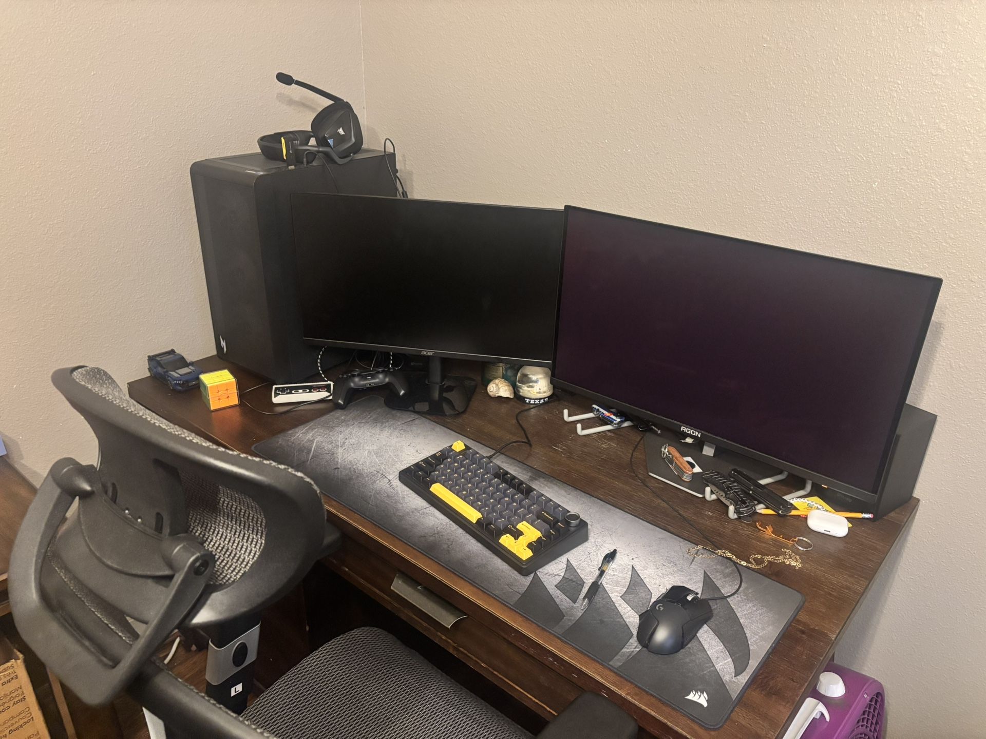 SERIOUS BUYERS ONLY!! I made this setup before I started this semester in college about two months ago, and i bought everything new. Come to find, I don't have much time to game, so i find myself hardly using it, unfortunately. Instead of leaving it here, I'd rather someone else have the setup for a better price. It comes with the 5070ti graphics card, 2TB ssd, 32G of ram, and a really high thread and core intel i7. It's great for gaming and well as office work of course. Along comes a 120hz 1080p monitor, a 240hz OLED monitor at 1440p resolution, corsair headphones, some inline speakers, aula f75 keyboard, ps5 controller, g502 logitech mouse, corsair mouse pad, and if you need, the desk and chair too. Please let me know if any extra details are needed!