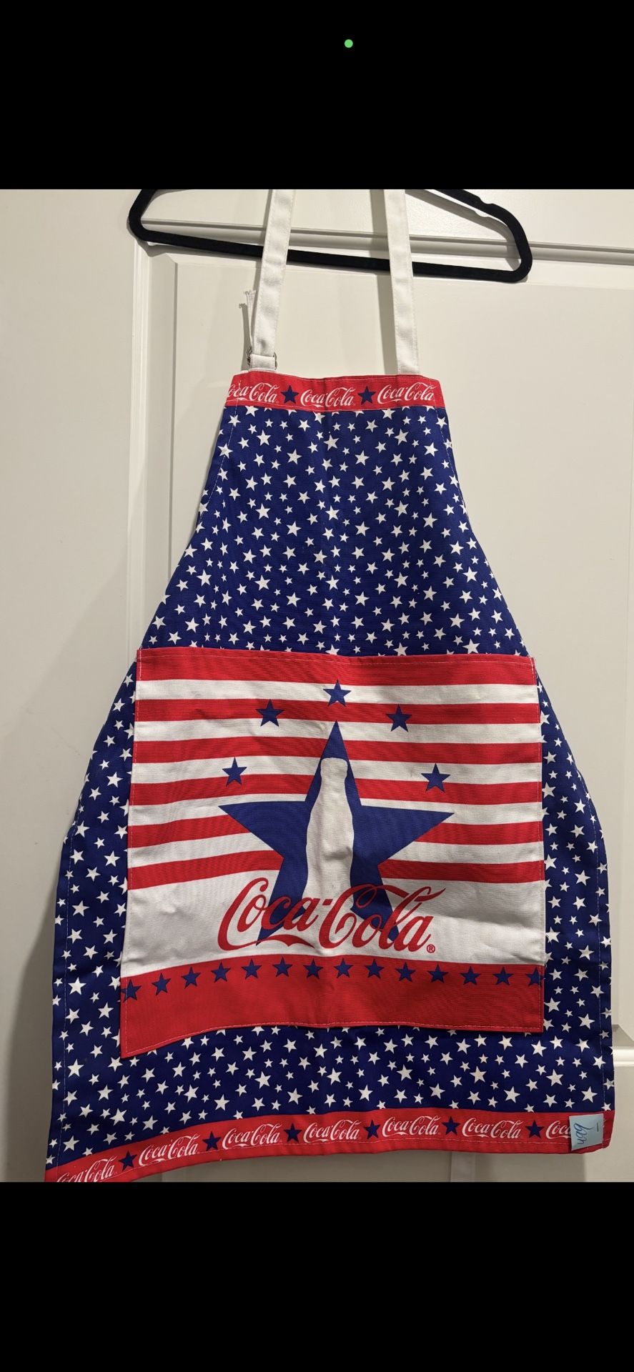 RARE - NEW Vintage 1999 Coca-Cola Stars & Stripes Full Apron w/Large Pocket Vivint colors 100# cotton Excellent condition