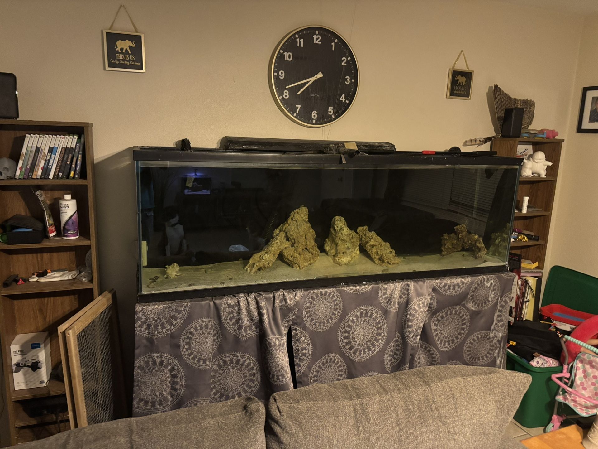 6’ x 24” x 18” Includes Inkbird heater controller Fluval FX4 T5 light fixture Solid wood stand Rock Everything